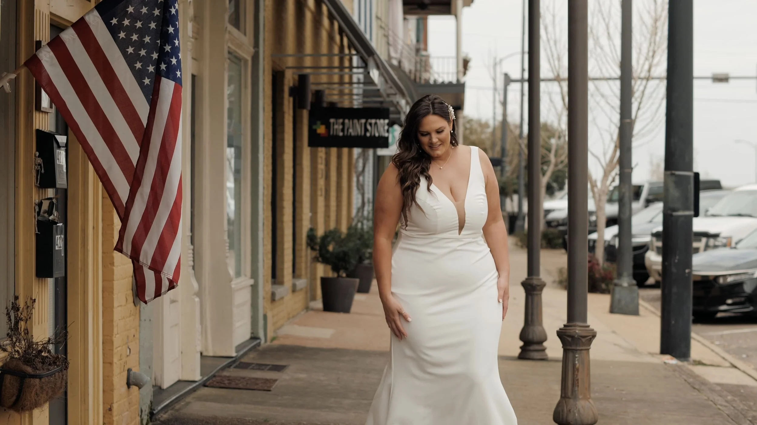 Caitlin and her bridal party got ready at a gorgeous Airbnb loft in downtown Columbus, MS. The loft had a gigantic window at the front so the small city skyline made a lovely backdrop as Caitlin got into her gown. Caitlin was breathtakingly beautiful. Caitlin also made all the floral bouquets which added a sweet touch to the details of the day. After a couple of 'beauty shots' downtown, we all headed to her family land outside of Caledonia, MS where the ceremony and reception were to be held. Caleb and his groomsmen looked sharp in their blue suits.